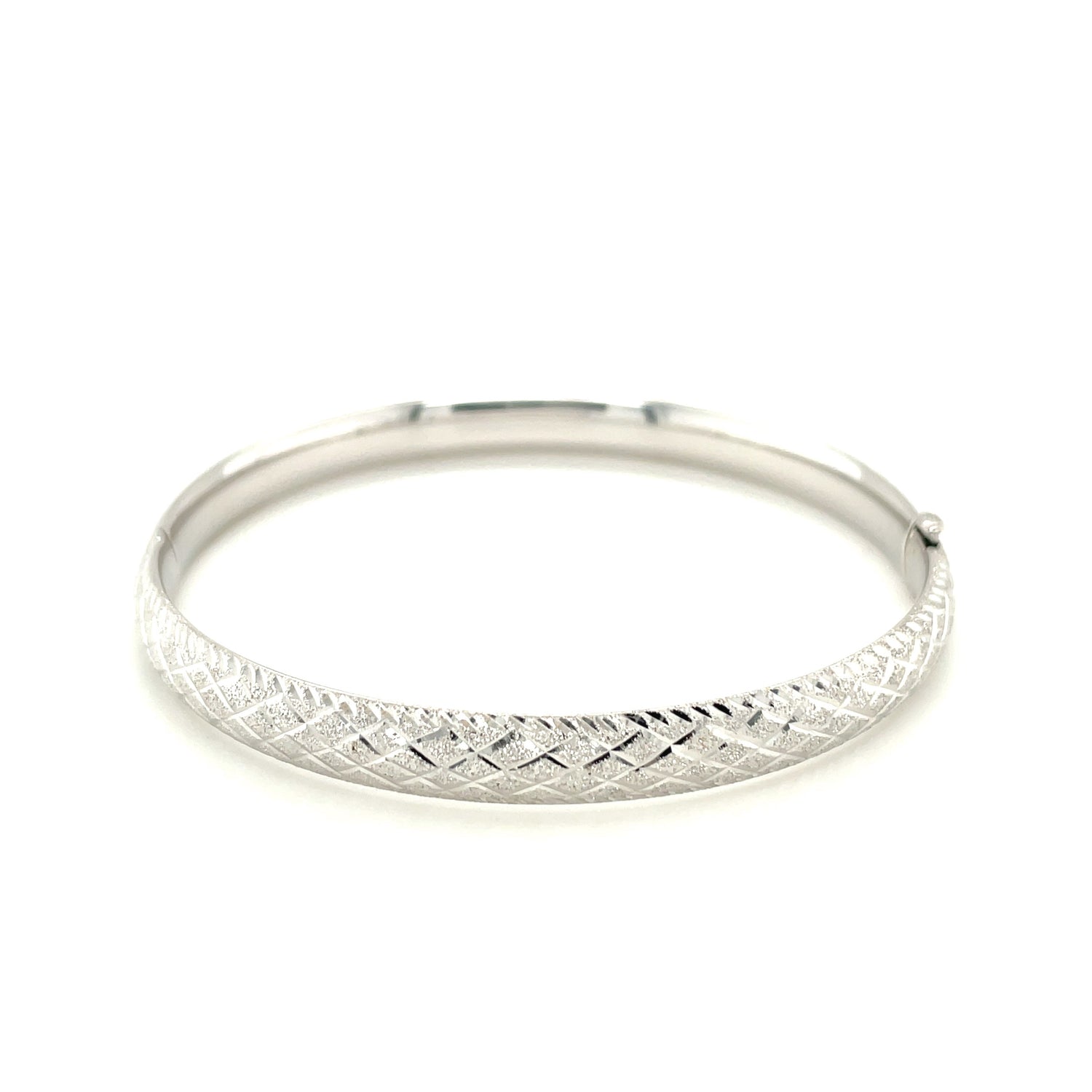 14k White Gold Diamond Carved Bangle (6.00 mm)