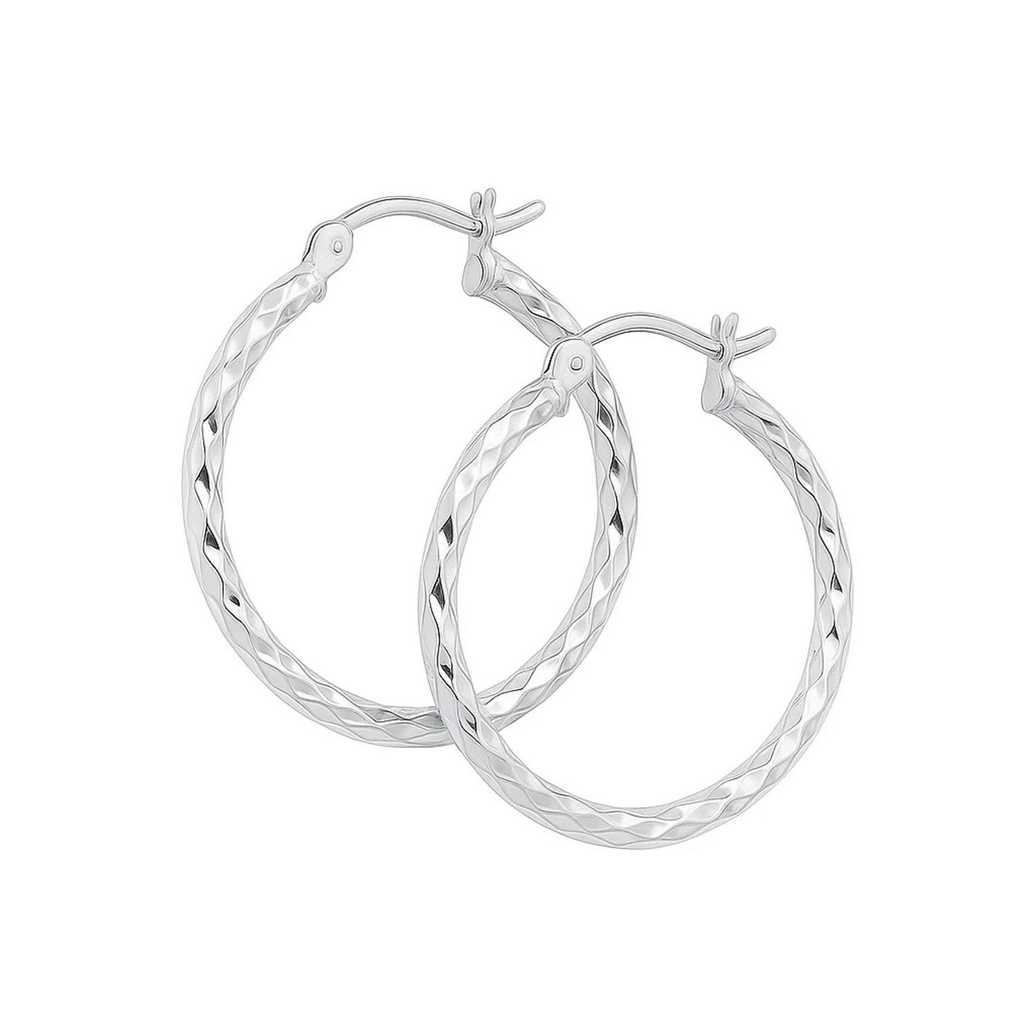 14k White Gold Diamond Cut Hoop Earrings (2x25mm)