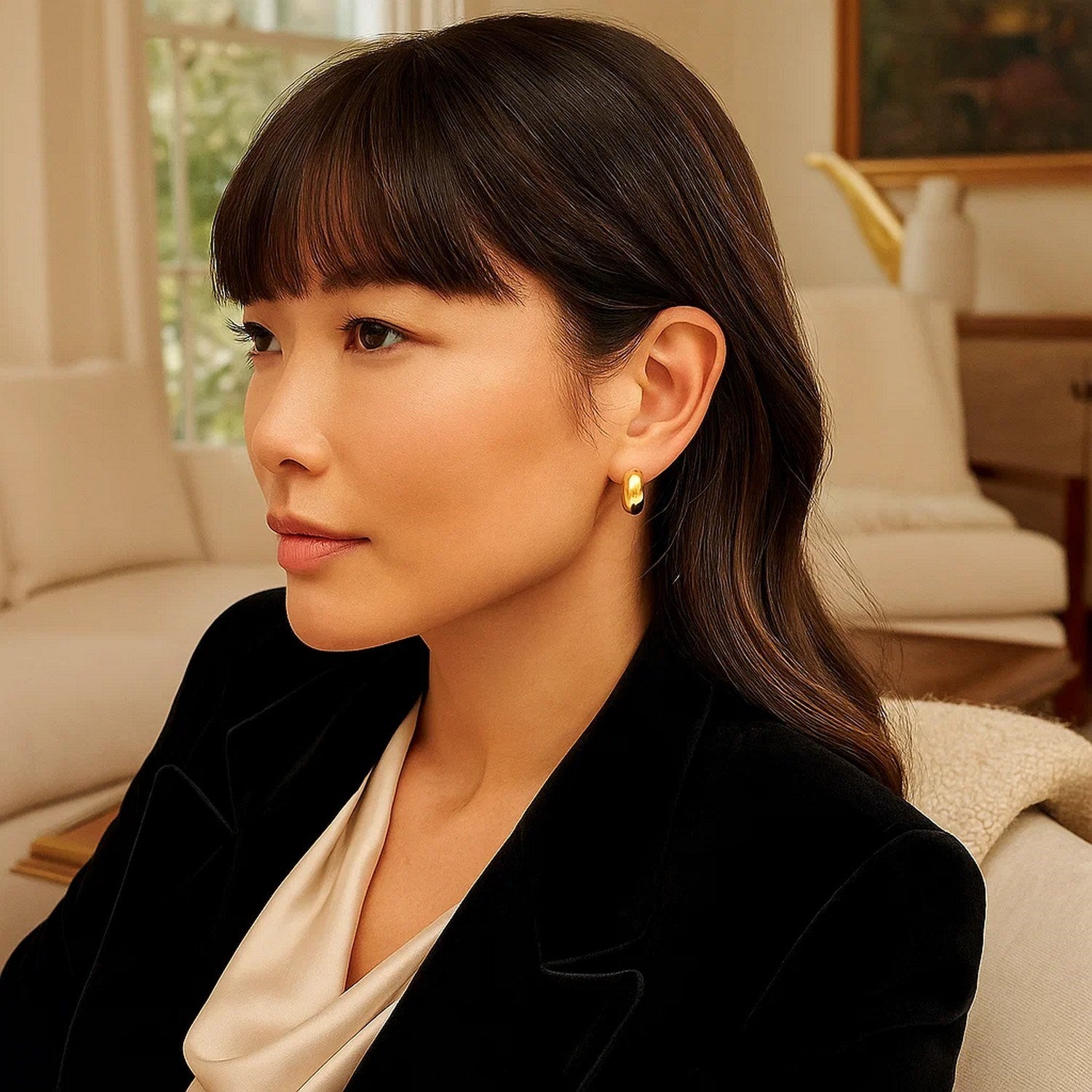 These Small Omega C-Hoop earrings are the perfect elegant design. Crafted in 14k yellow gold with a high polish finish & a omega back closure.