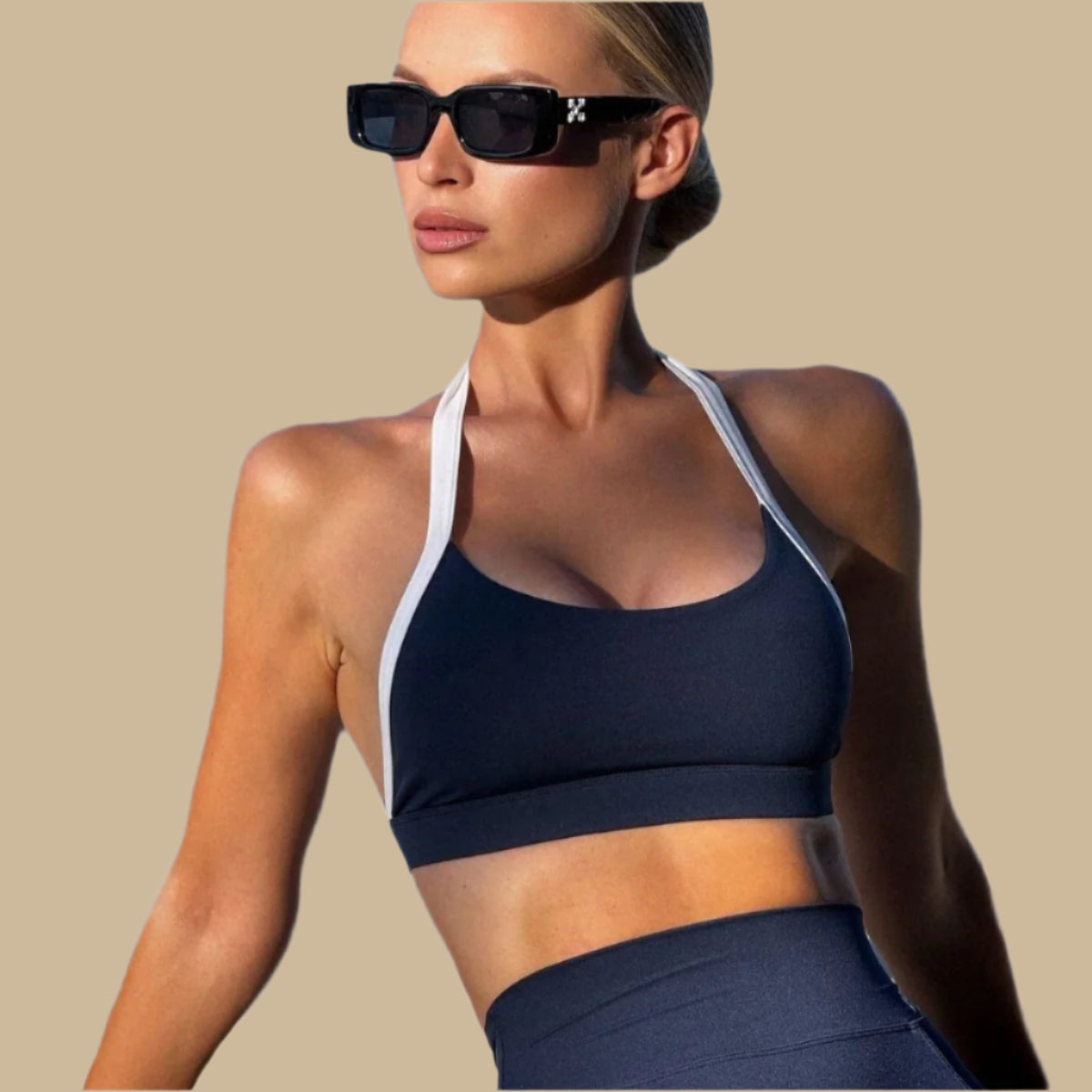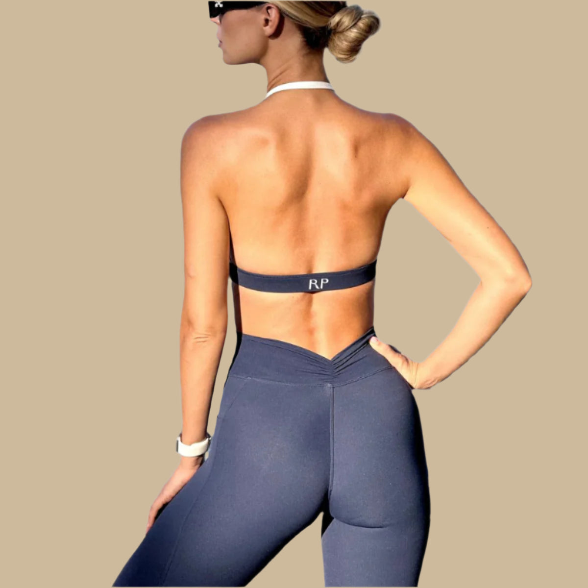 The Backless Halter Top delivers sculpting support with a sleek, open back design and contrast white straps. Crafted from medium weight, breathable fabric, it’s perfect for workouts, errands, and everything in between.