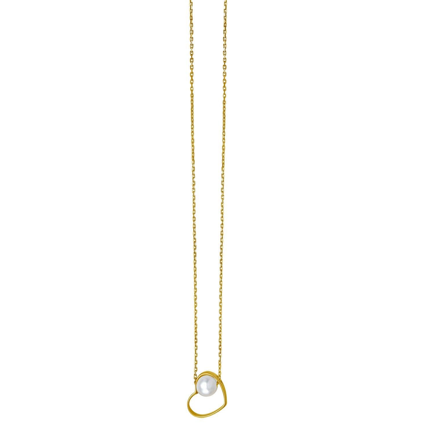 Open Heart and Pearl Necklace in 14K Yellow Gold